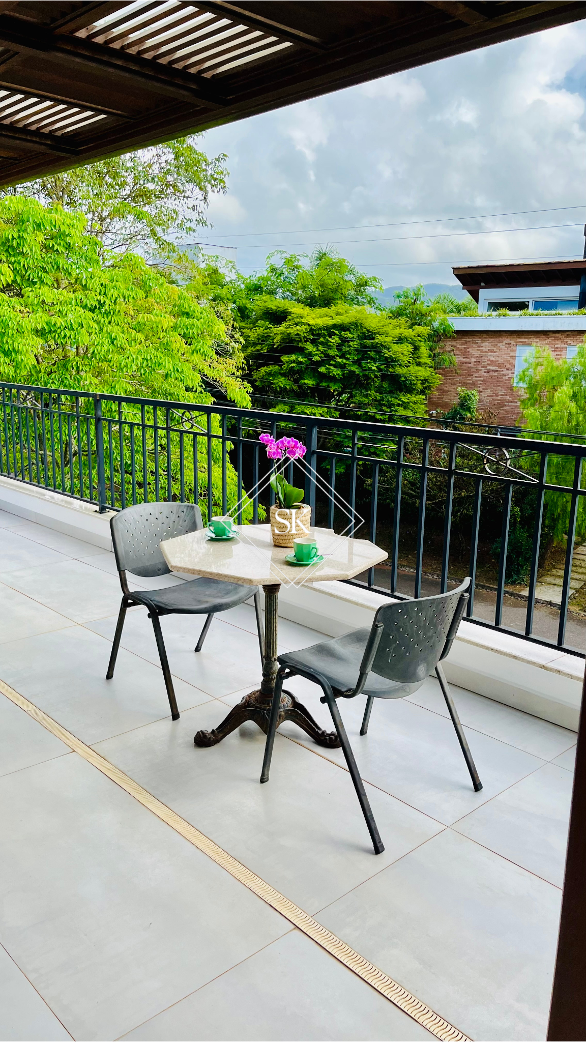 Varanda enorme com vista linda em direção da Lagoa da Conceição.