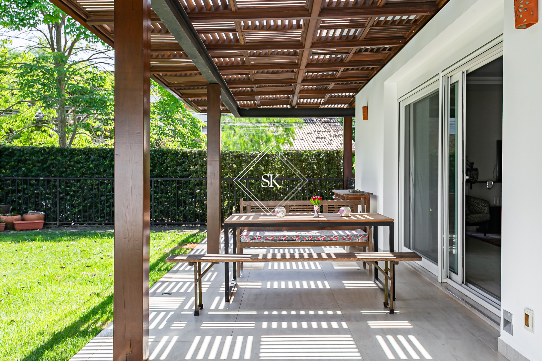• Grande área externa com pergolado de Angelim pedra com cobertura de vidro. Espaço para piscina.